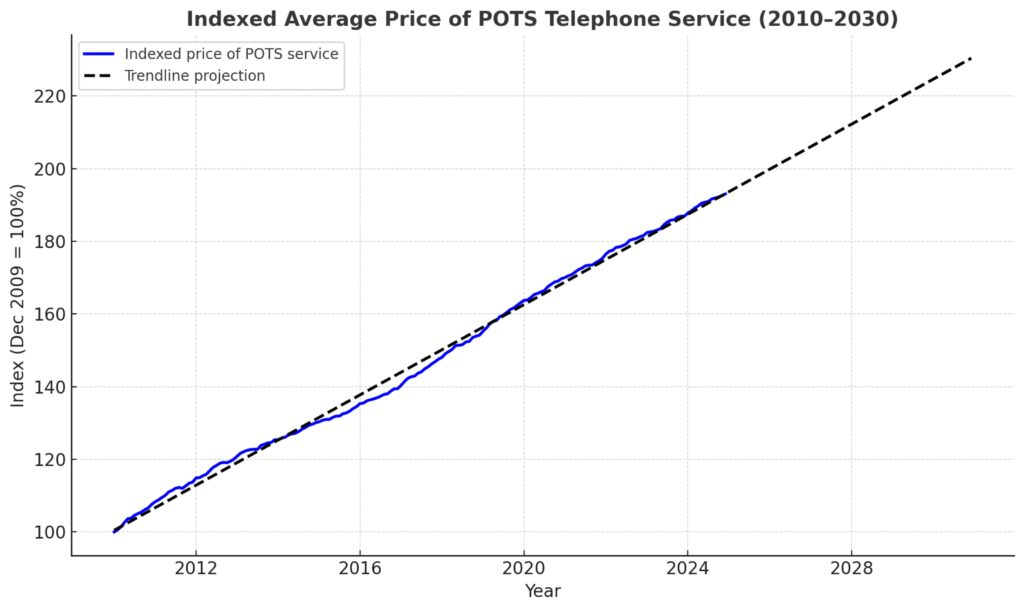 In 2019, the FCC issued Order 19-72, which relaxed the rules for operators of analog POTS networks. This regulatory change led to a significant increase in the cost of POTS telephone services, with prices increasing 31.4% annually on average (source: bls.gov). Businesses are now paying hundreds of dollars per month—per line.